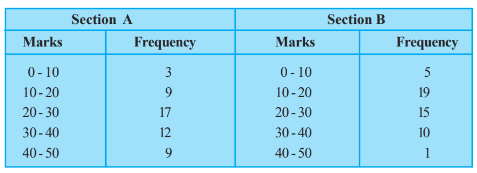 The following table gives the distribution of students of two sections according to the marks obtained by them: