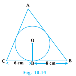 A triangle $ABC$ is drawn to circumscribe a circle of radius $4$ cm such that the segments $BD$ and $DC$ into which $BC$ is divided by the point of contact $D$ are of lengths $8$ cm and $6$ cm respectively (see Fig. 10.14). Find the sides $AB$ and $AC$.