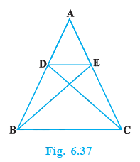 In Fig. 6.37, if $\triangle ABE \cong \triangle ACD$, show that $\triangle ADE \sim \triangle ABC$.