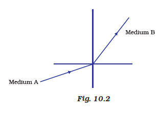 A light ray enters from medium A to medium B as shown in Figure 10.2. The refractive index of medium B relative to A will be