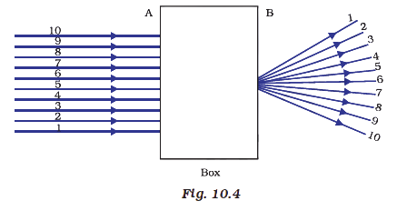 A beam of light is incident through the holes on side $A$ and emerges out of the holes on the other face of the box as shown in the Figure 10.4. Which of the following could be inside the box?